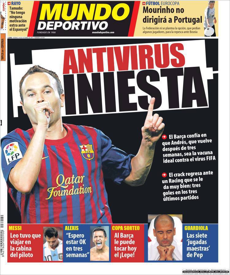 MUNDO DEPORTIVO INIESTA – Sul quotidiano catalano Mundo Deportivo si parla di Iniesta, centrocampista spagnolo del Barcellona che è pronto a tornare in campo.