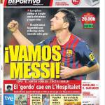 Mundo Deportivo: Andiamo Messi 15/10/2011 di Ruggieri MUNDO DEPORTIVO MESSI – Sul quotidiano catalano Mundo Deportivo si parla di Messi che dovrà portare alla vittoria il Barcellona contro il Racing. Claudio Ruggieri – www.calciomercatonews.com
