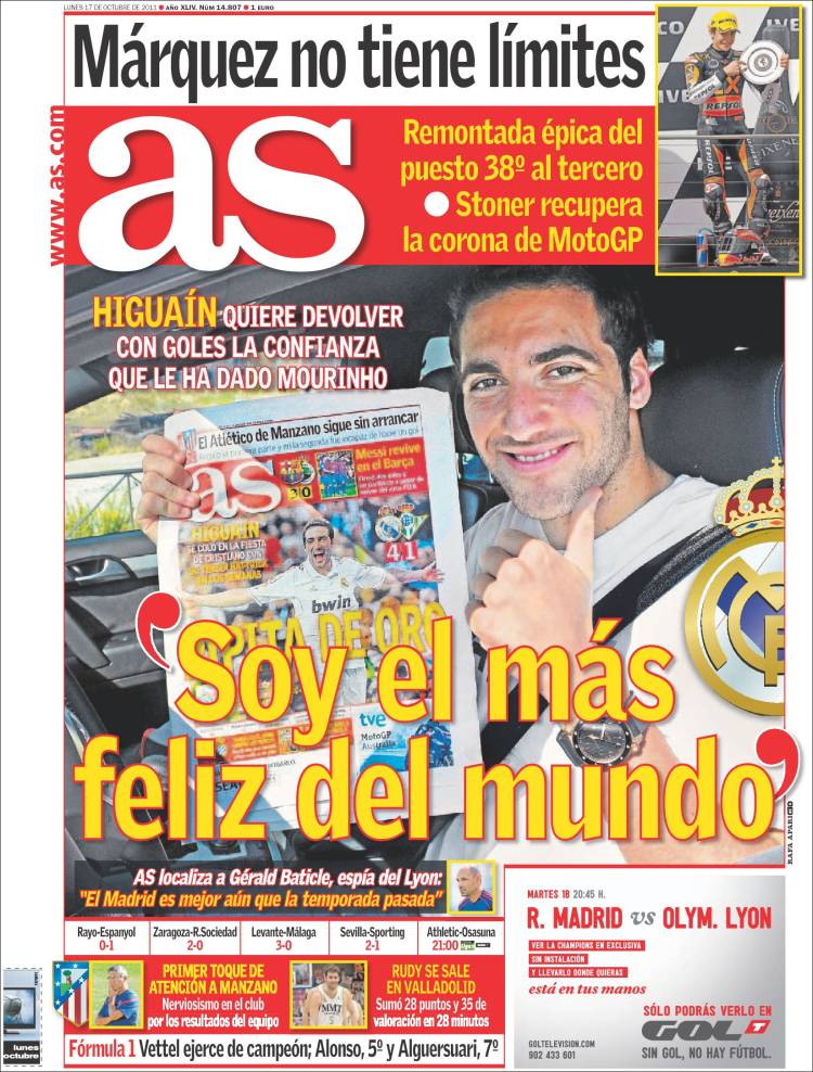 AS HIGUAIN REAL MADRID – Sul quotidiano As si parla di Higuain che sabato sera ha segnato la terza tripletta schiantando il Betis.