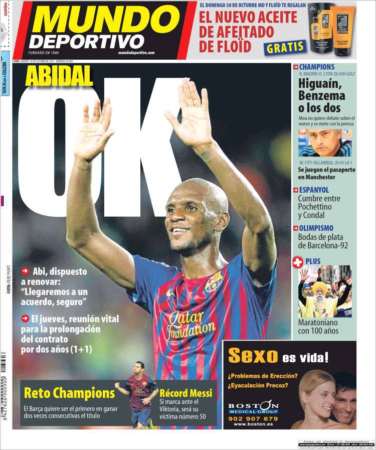 Mundo Deportivo: Abidal ok 18/10/2011 di Ruggieri MUNDO DEPORTIVO ABIDAL – Il terzino del Barcellona Abidal pronto a rinnovare. Claudio Ruggieri – www.calciomercatonews.com