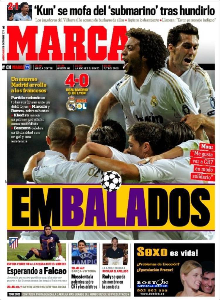MARCA REAL MADRID – Il Real Madrid imballa, asfalta, il Lione vincendo quattro a zero.