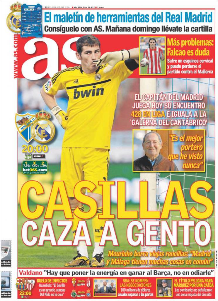 AS CASILLAS GENTO – Sul quotidiano As si parla di Casillas che questa sera giocherà il suo incontro numero 428 nella Liga e ha messo nel mirino Gento.