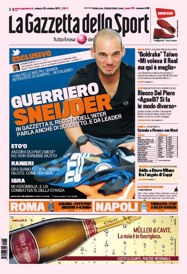 GAZZETTA SNEIJDER – Sulla Gazzetta dello Sport intervista esclusiva a Wesley Sneijder.