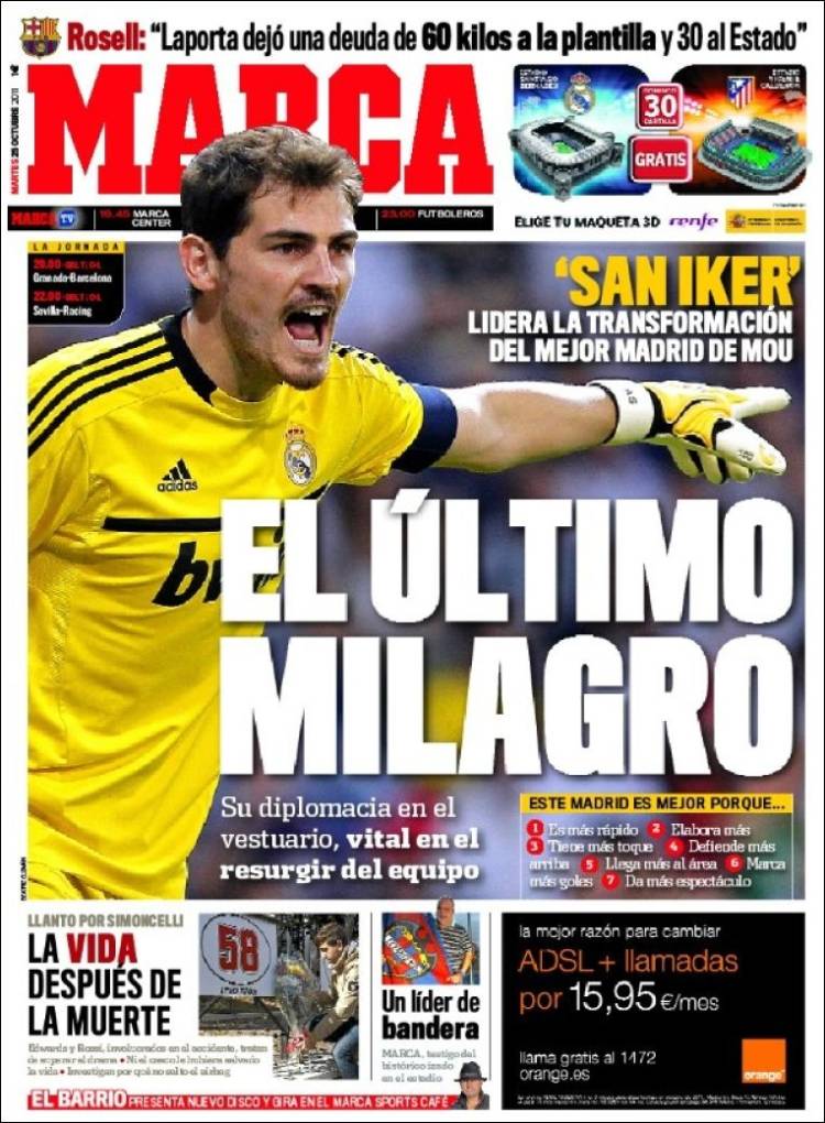MARCA CASILLAS – Sul quotidiano Marca viene elogiato Iker Casillas, portiere del Real Madrid.