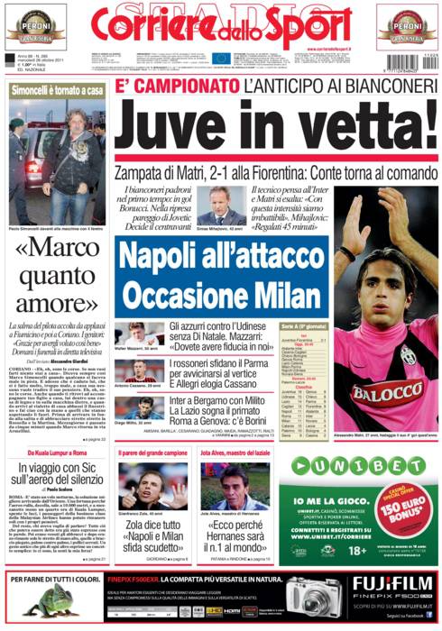 CORRIERE JUVENTUS – Sul Corriere dello Sport si parla della Juventus che ritorna in testa alla classifica.