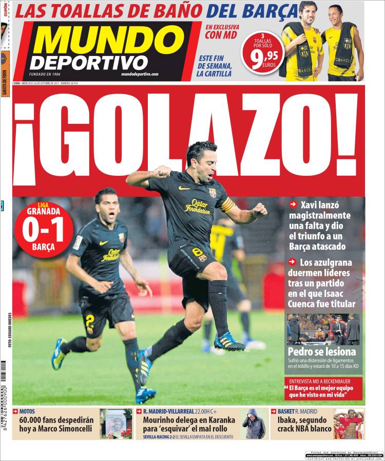 MUNDO DEPORTIVO XAVI – Basta un gol su punizione di Xavi per permettere al Barcellona di vincere uno a zero sul campo del Granada.