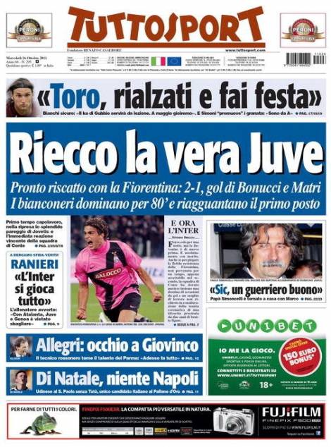 TUTTOSPORT JUVENTUS – Su Tuttosport si parla della vittoria della Juventus contro la Fiorentina per due a uno.