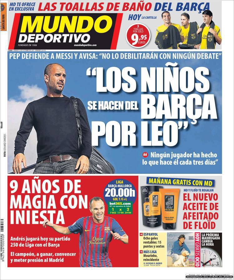 MUNDO DEPORTIVO GUARDIOLA MESSI – Sul quotidiano catalano Mundo Deportivo parla Guardiola per difendere Messi.