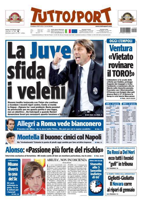 TUTTOSPORT JUVENTUS – Anche Tuttosport parla della sfida tra Inter e Juventus, Conte non vuole sentire parlare di sfida della vita.
