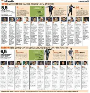 INTER JUVENTUS VOTI PAGELLE GAZZETTA DELLO SPORT FOTO – Buona la prova della Juventus a Milano: la squadra di Conte, continua a mettere i tasselli per una crescita costante e che, sin’adesso, ha regalato il primo posto ai bianconeri. Leggiamo insieme le pagelle della Gazzetta dello Sport sulla partita di ieri sera. Migliore in campo per la Juventus, Claudio Marchisio che, con un gol ed un ottima prestazione, continua a regalare soddisfazioni ai tifosi della “Vecchia Signora”.