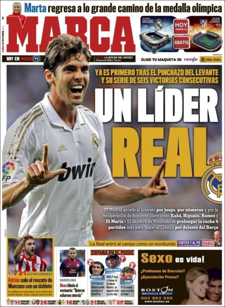 MARCA REAL MADRID – Il Real Madrid è in testa alla Liga spagnola dopo lo stop di ieri del Levante.