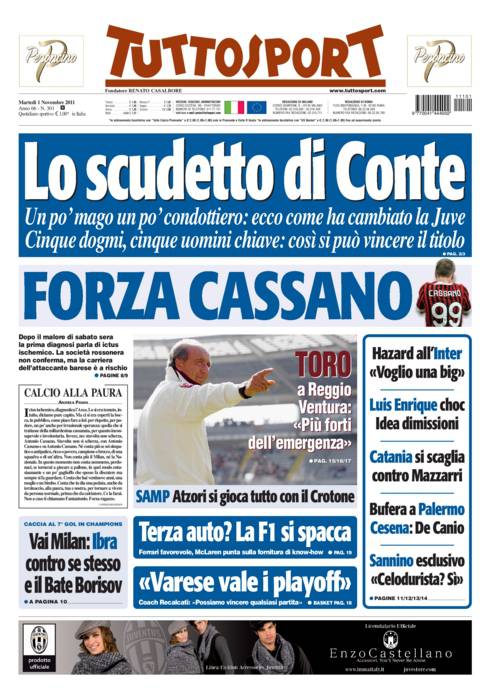 TUTTOSPORT SCUDETTO CONTE – Tuttosport elogia il tecnico della Juventus Antonio Conte.