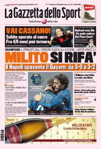 Gazzetta dello Sport: Milito si rifà 03/11/2011 di Ruggieri GAZZETTA INTER – Sulla Gazzetta dello Sport si parla di Milito, attaccante dell’Inter che ha siglato il gol del due a zero contro il Lille. Claudio Ruggieri – www.calciomercatonews.com