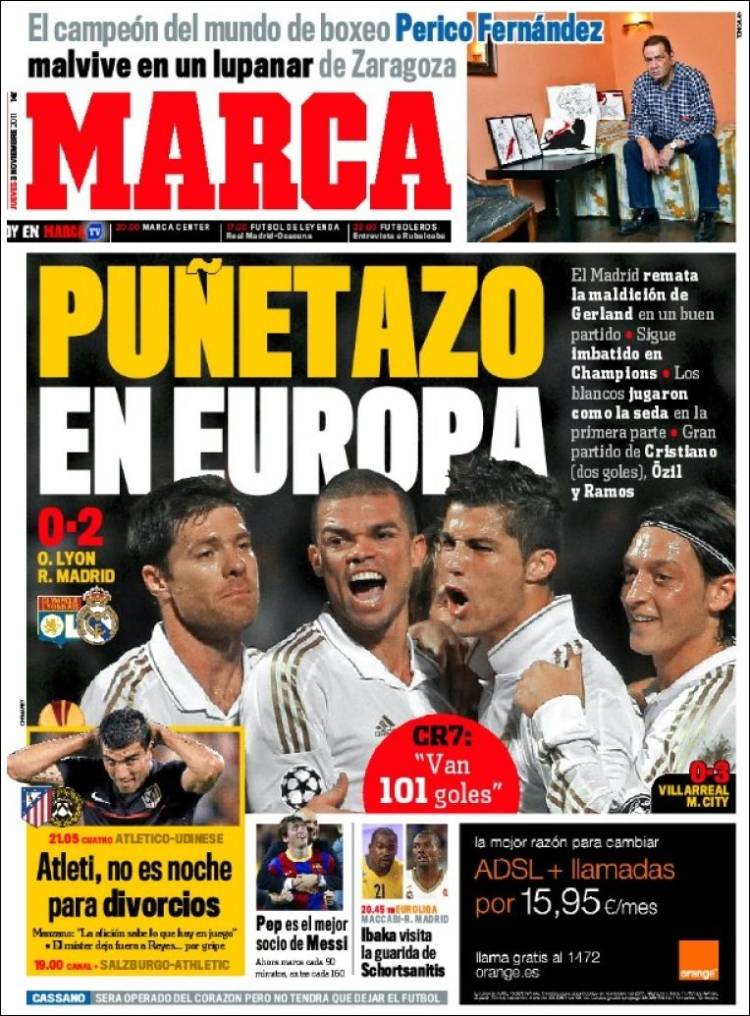 MARCA REAL MADRID – Il Real Madrid vince due a zero sul campo del Lione e si qualifica agli ottavi di finale.