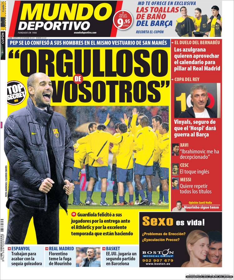 MUNDO DEPORTIVO GUARDIOLA – Il tecnico del Barcellona dopo il match pareggiato in casa dell’Atletico Bilbao ha elogiato la prova dei suoi ragazzi.