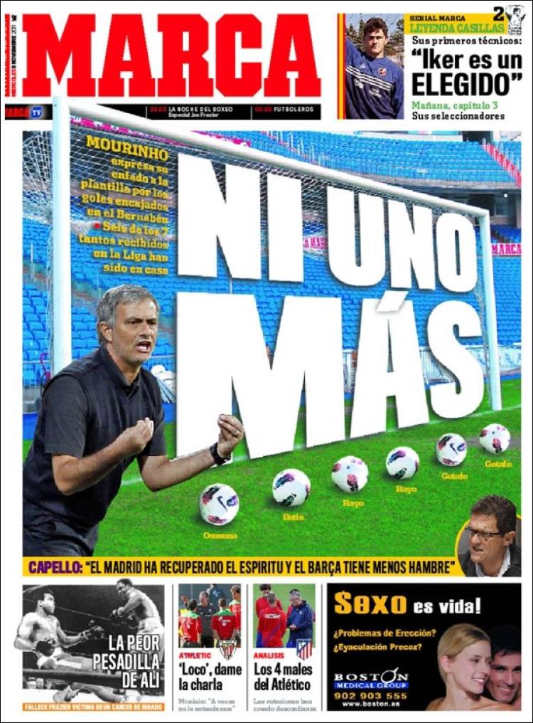 MARCA REAL MADRID – Sul quotidiano spagnolo Marca si parla del Real Madrid con Mourinho che vuole una mentalità molto offensiva.