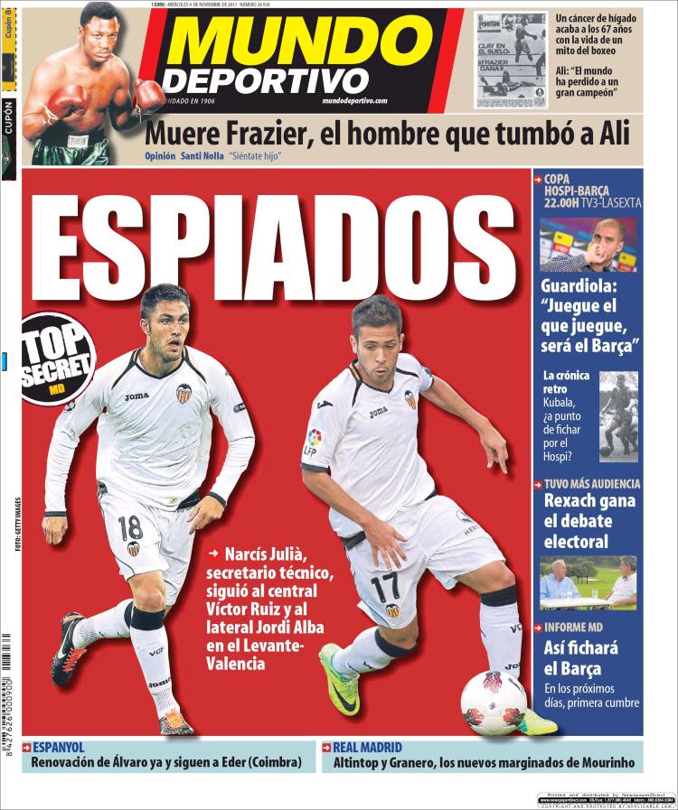 MUNDO DEPORTIVO BARCELLONA – Il Barcellona visionerà il difensore Victor Ruiz e Jordi Alba del Valencia.