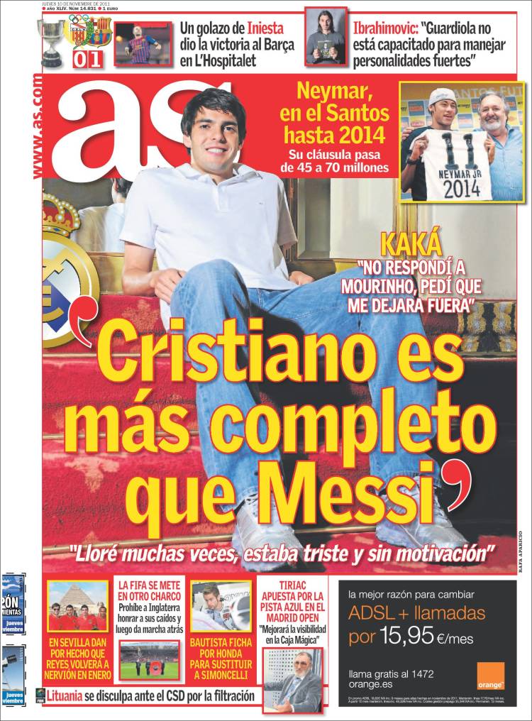 AS KAKA’ – Secondo Ricardo Kakà, il compagno di squadra Ronaldo è più completo di Messi.