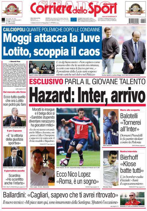 CORRIERE HAZARD – Sul Corriere dello Sport intervista esclusiva a Eden Hazard, talento del Lille, che chiama l’Inter.