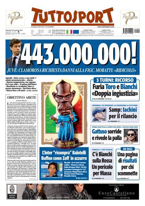 TUTTOSPORT JUVENTUS – Su Tuttosport c’è la cifra che ha chiesto la Juventus per i danni subiti da Calciopoli.