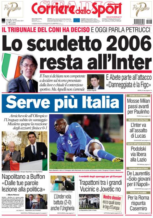 CORRIERE INTER SCUDETTO – Ieri il Tnas ha dichiarato di essere non competente per quanto riguarda l’assegnazione dello Scudetto 2006.