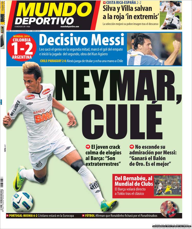 MUNDO DEPORTIVO NEYMAR – Sul quotidiano catalano Mundo Deportivo si parla di Neymar che potrebbe passare al Barcellona nella prossima stagione.