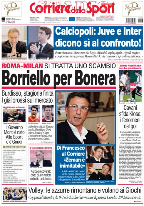 CORRIERE BORRIELLO BONERA – Sul Corriere dello Sport si parla di un possibile scambio tra Borriello e Bonera.