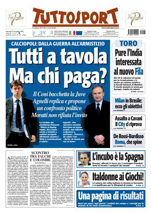TUTTOSPORT AGNELLI – Anche Tuttosport parla del possibile tavolo della pace con Petrucci, Agnelli, Moratti.