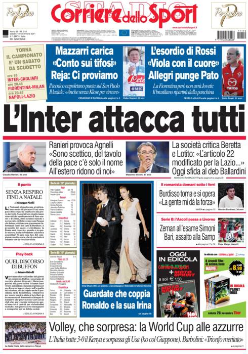 CORRIERE INTER – Sul Corriere dello Sport si parla dell’Inter che ieri ha attaccato Agnelli e il duo Beretta-Lotito.
