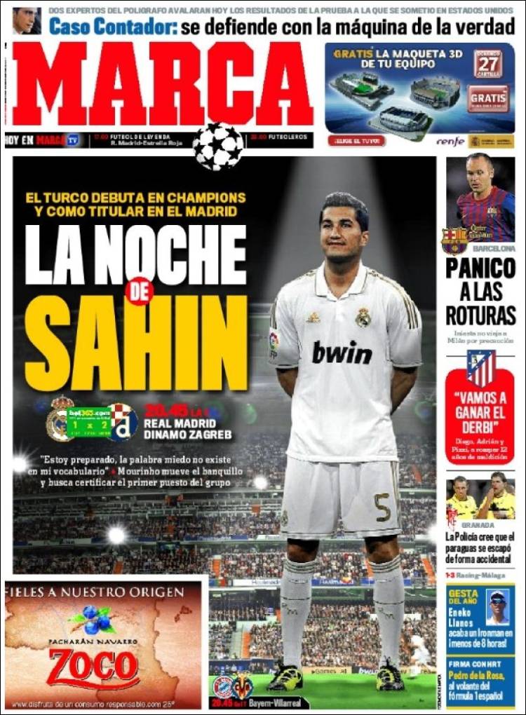 MARCA SAHIN – Sul quotidiano Marca si parla di Sahin che debutta con la maglia del Real Madrid contro la Dinamo Zagabria dopo tanti problemi fisici.
