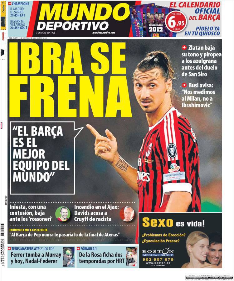 MUNDO DEPORTIVO IBRAHIMOVIC – Dopo le polemiche di qualche giorno fa, Ibrahimovic elogia il Barcellona definendolo la migliore squadra del mondo.