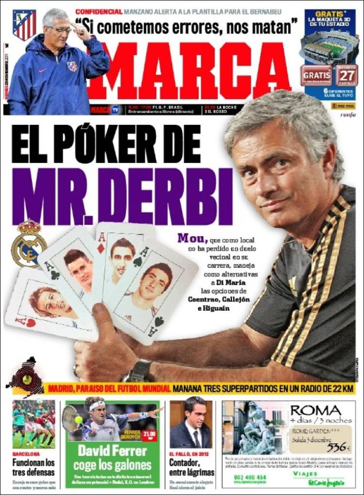 MARCA POKER – Sul quotidiano Marca si parla delle quattro opzioni di Mourinho sulla fascia dove solitamente gioca Di Maria.