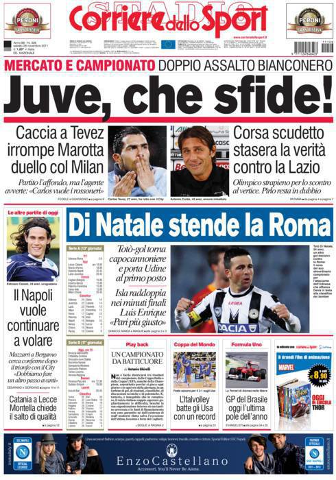 CORRIERE JUVENTUS – Anche il Corriere dello Sport parla dell’affare Tevez con Juventus e Milan che si sfideranno fino alla fine.