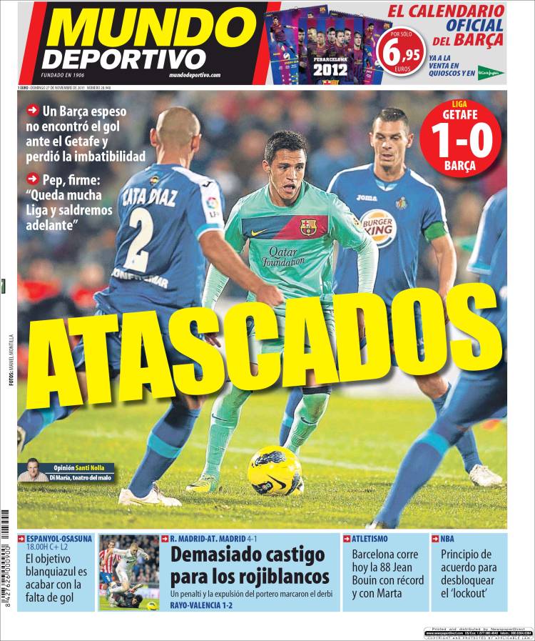 MUNDO DEPORTIVO RASSEGNA STAMPA ESTERA – “Bloccati“, questo il titolo del Mundo Deportivo, quotidiano storicamente vicino all’ambiente blaugrana. Brucia la sconfitta subita contro il Getafe, che vede il Real andare a +6 e, soprattutto, ha visto cadere l’imbattibilità della squadra di Pep Guardiola. Il tecnico catalano predica comunque calma e tranquillità: “Ci sono ancora molte partite da giocare e riusciremo a finire davanti al Real Madrid“. In taglio basso, nella parte dedicata alla vittoria del blancos, il giornale prende le parti dell’Atletico, troppo “punito” dall’arbitro, con un rigore e l’espulsione del portiere.