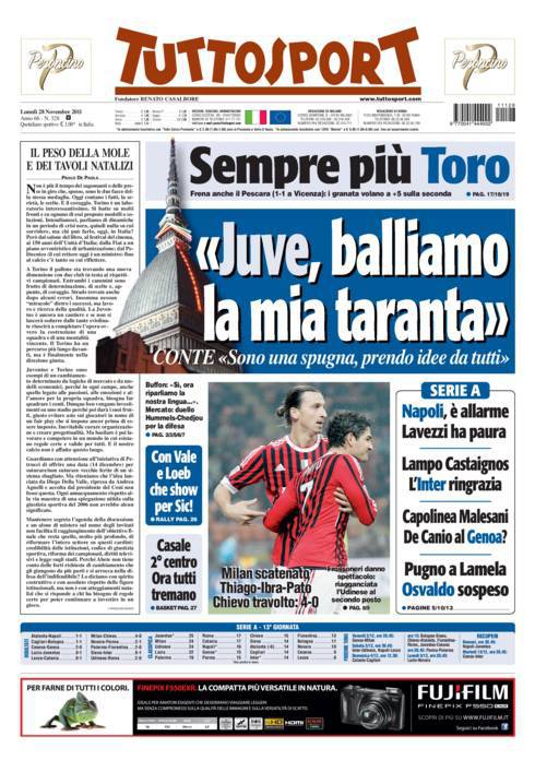 TUTTOSPORT JUVENTUS – Sul quotidiano Tuttosport si parla ovviamente della Juventus che vola in cima alla classifica.
