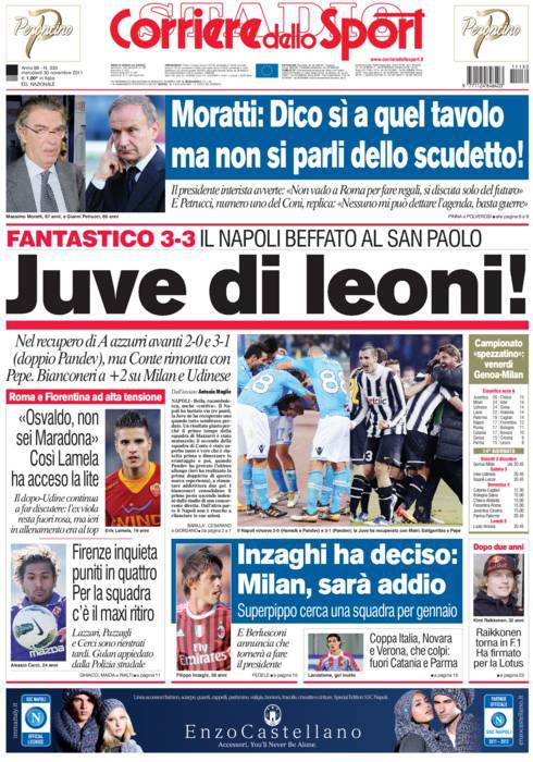CORRIERE JUVENTUS – Sul Corriere dello Sport si parla della Juventus che rimonta il Napoli al San Paolo.