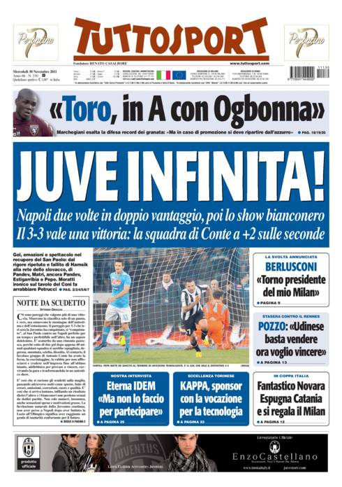 TUTTOSPORT JUVENTUS – Su Tuttosport si parla della Juventus che ha rimontato due gol al Napoli.