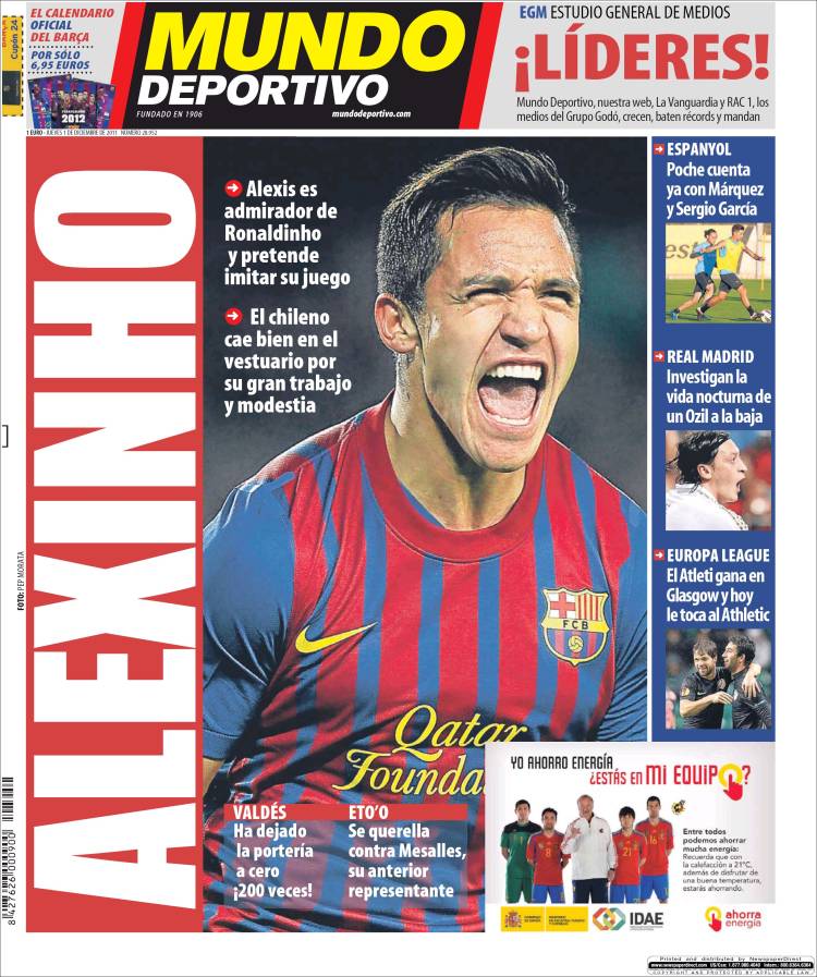 MUNDO DEPORTIVO SANCHEZ – Sul quotidiano Mundo Deportivo si parla di Alexis Sanchez che vuole imitare Ronaldinho.