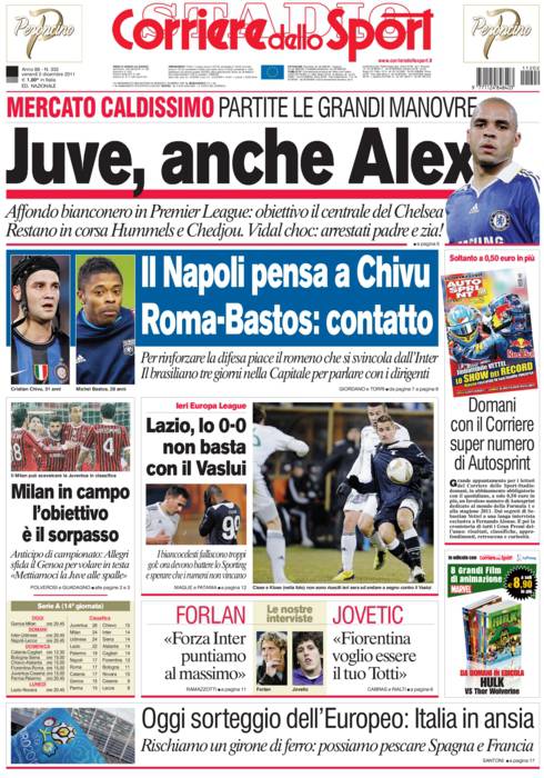 CORRIERE JUVENTUS ALEX – Sul Corriere dello Sport si parla di mercato con il possibile arrivo a Torino di Alex, difensore del Chelsea.