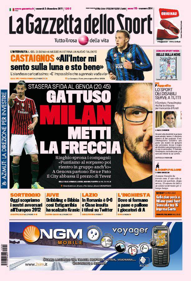 GAZZETTA GATTUSO MILAN – Sulla Gazzetta dello Sport si parla del Milan che questa sera giocherà contro il Genoa. Gattuso sprona i compagni.