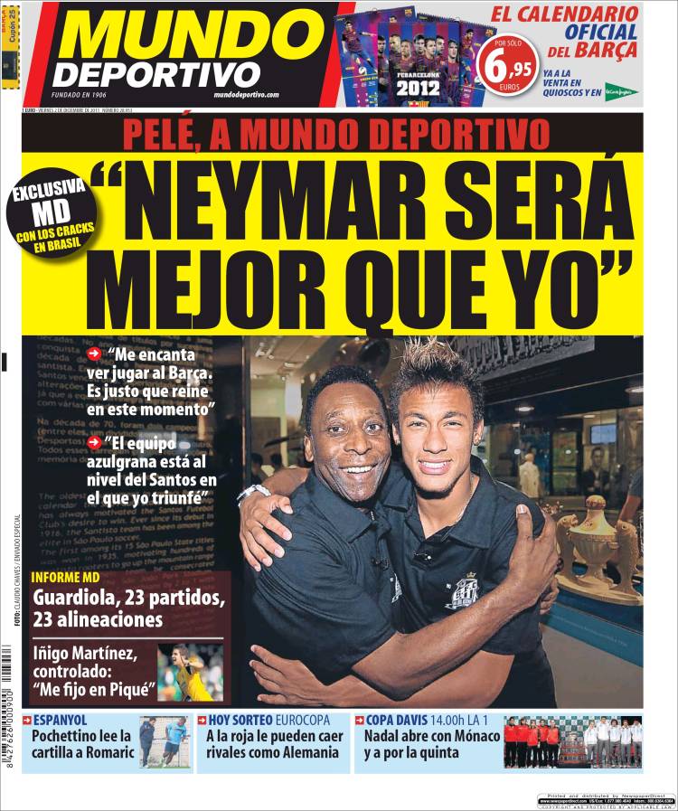 MUNDO DEPORTIVO NEYMAR – Sul quotidiano Mundo Deportivo intervista esclusiva a Pelè, che elogia Neymar.