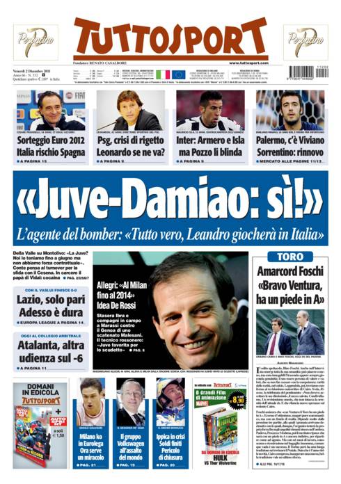 TUTTOSPORT JUVENTUS DAMIAO – Su Tuttosport parla l’agente del giocatore che conferma il possibile arrivo di Damiao alla Juventus.