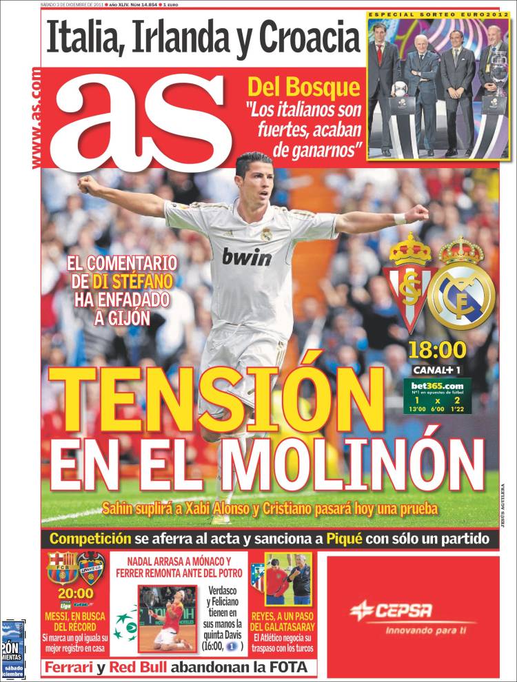 AS REAL MADRID SPORTING GIJON – Il Real Madrid oggi deve giocare sul campo dello Sporting Gijon. Tanta tensione per questo incontro.