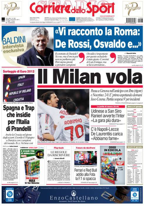 CORRIERE MILAN – Sul Corriere dello Sport si parla del Milan che vince due a zero contro il Genoa.
