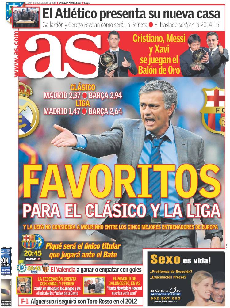 AS REAL MADRID – Sul quotidiano madrileno As si parla del Real Madrid che è favorito per la Liga e per il Clasico contro il Barcellona.