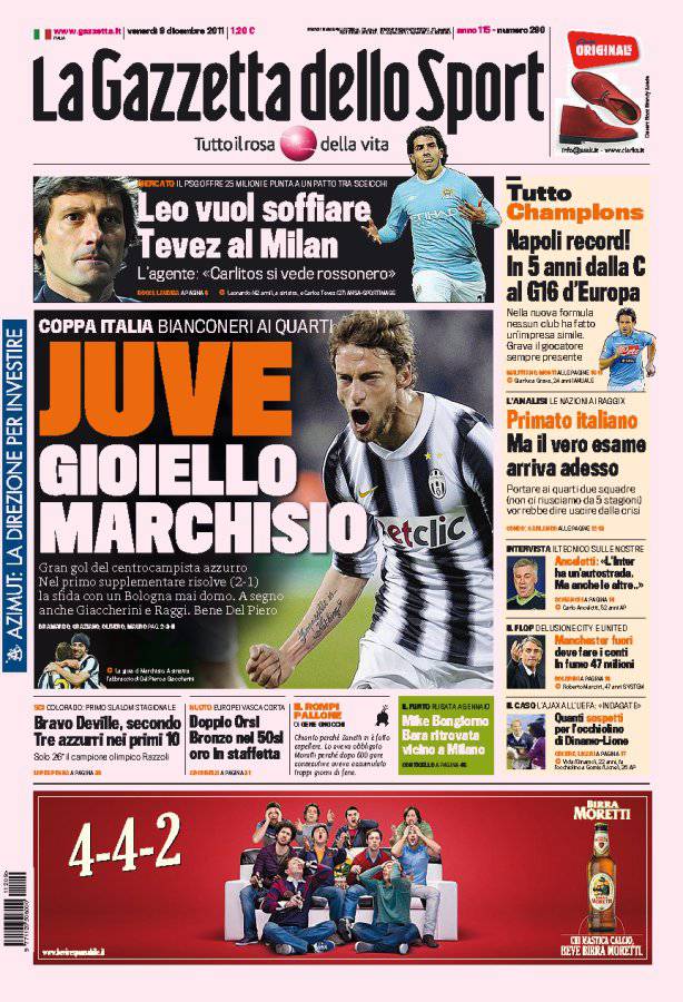 GAZZETTA MARCHISIO JUVENTUS – Sulla Gazzetta dello Sport si parla di Marchisio che ieri ha risolto il match di Coppa Italia contro il Bologna con un grande gol nei supplementari.