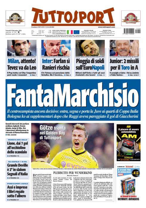 TUTTOSPORT MARCHISIO – Un gran gol di Marchisio porta la Juventus ai quarti di finale di Coppa Italia.