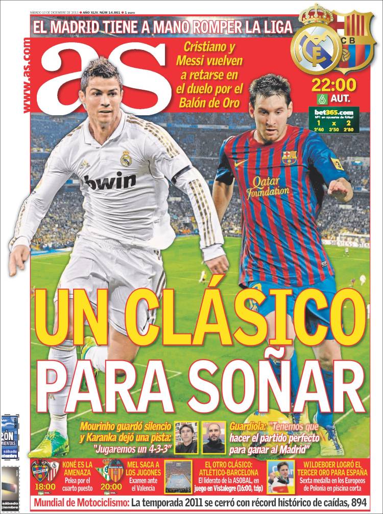 AS CLASICO – Sul quotidiano As si parla della grande sfida tra Real Madrid e Barcellona.
