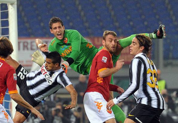 CALCIO SERIE A ROMA JUVENTUS VOTI PAGELLE – E’ finita 1-1 tra Juventus e Roma, un pareggio che però ha regalato emozioni, come testimoniano i voti alti che la Gazzetta delo Sport assegna ai due portieri. Migliore in campo De Rossi, impiegato in difesa, molto positiva anche la prova del suo compagno di reparto Heinze. In ombra Lamela, ma è stato tutto l’attacco giallorosso a non vivere una particolare serata di grazia. Anche in casa Juve i voti più alti si registrano in difesa, mentre Matri è parso ben lontano dal killer d’area visto nelle ultime settimane.