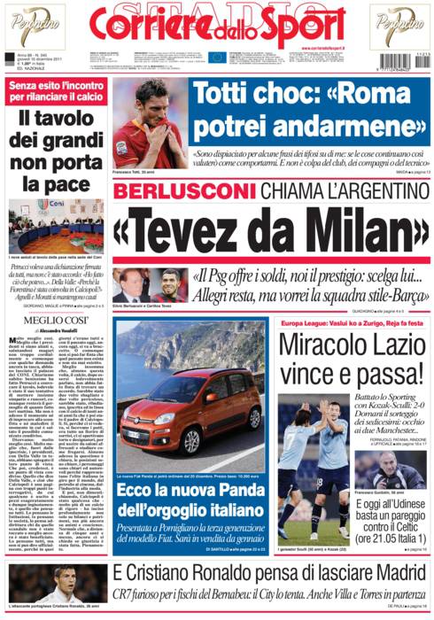 CORRIERE TEVEZ MILAN – Sul Corriere dello Sport si parla di Berlusconi che chiama Tevez.